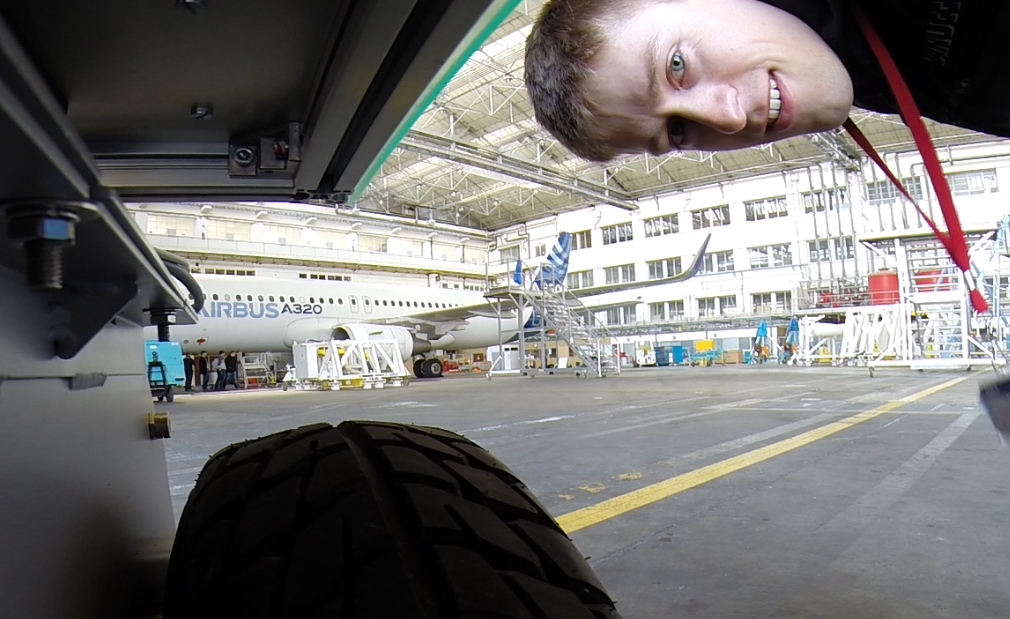 Air-Cobot was a project I had worked on during my PhD. It was an an "aerospace valley project" with the goal to devolope an autonomous, but collaborative robot to facilliate pre-flight inspection checks for commercial aricrafts. The PoC was done on the Airbus A320. This project was a joint venture between Airbus and other companies in the south of France with the software development spear-headed by LAAS-CNRS. My role here was the design and implementation of navigation algorithms (SLAM as well as Visual Servoing), novel obstacle avoidance methods and creation of a state machine to mimic behavoir-based control concepts. The project also included topics like machine learning (mainly for perception) and and low level BUS management.