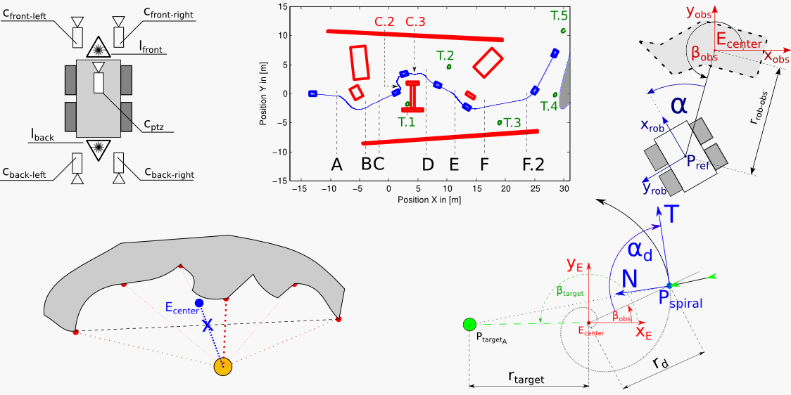 Initally the scope of my thesis was limited to obstacle avoid, but over time I was given more responsability, ending up providing a holistic navigation stack including behavior-based controllers for: Visual Servoing, SLAM, Geo-Fencing, Dynamic Obstacle Avoidance and many more. If you are interested, there is a wikipedia page and some videos on YouTube.